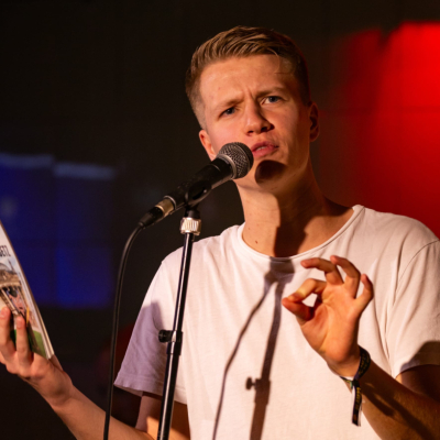 Leander Bauer bereist seit 2019 mit seinen Texten sämtliche Bühnen im deutschsprachigen Raum.